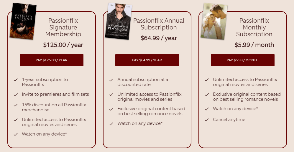 El servicio, que no llega a siete euros en España, acepta demandas de los espectadores. Passionflix puede cancelarse en el momento que se quiera.